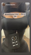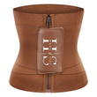 Our Womens waist trainer is a polyester one strap trainer with firm control. The material gives comfort while also training your waist without leaving scars. The closure is a zipper (no hooks), so the band extends and is adjustable for your comfort.
